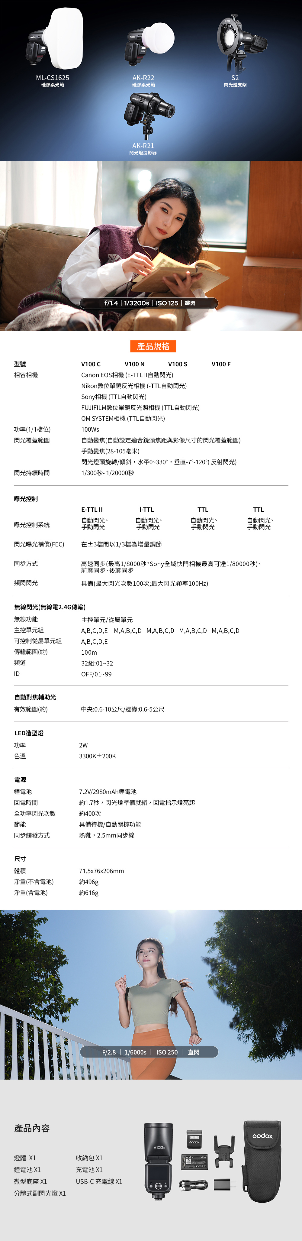 Godox 神牛 牛 V100 旗艦級閃光燈 100W For Sony